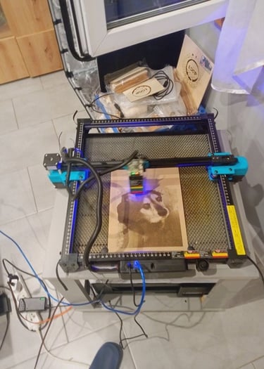 Grawerowanie laserowe na różnych materiałach, od drewna po szkło.